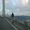 Motorsuz taşıt kullanımının yasak olduğu Boğaziçi Köprüsü'nde bisikletiyle karşı yakaya geçmeye çalışan bir kişi amatör bir kamera tarafından görüntülendi.