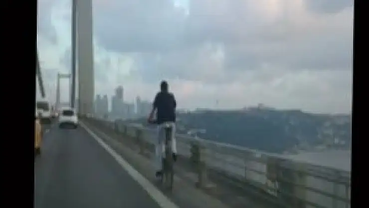 Sabah saatlerinde bisikletiyle Boğaziçi Köprüsü üzerinde seyahat eden bir kişi amatör kamera tarafından görüntülendi. Motorsuz taşıt kullanımının yasak olduğu köprü üzerinde bisiklet kullanan sürücü olası bir kazaya davetiye çıkardı.