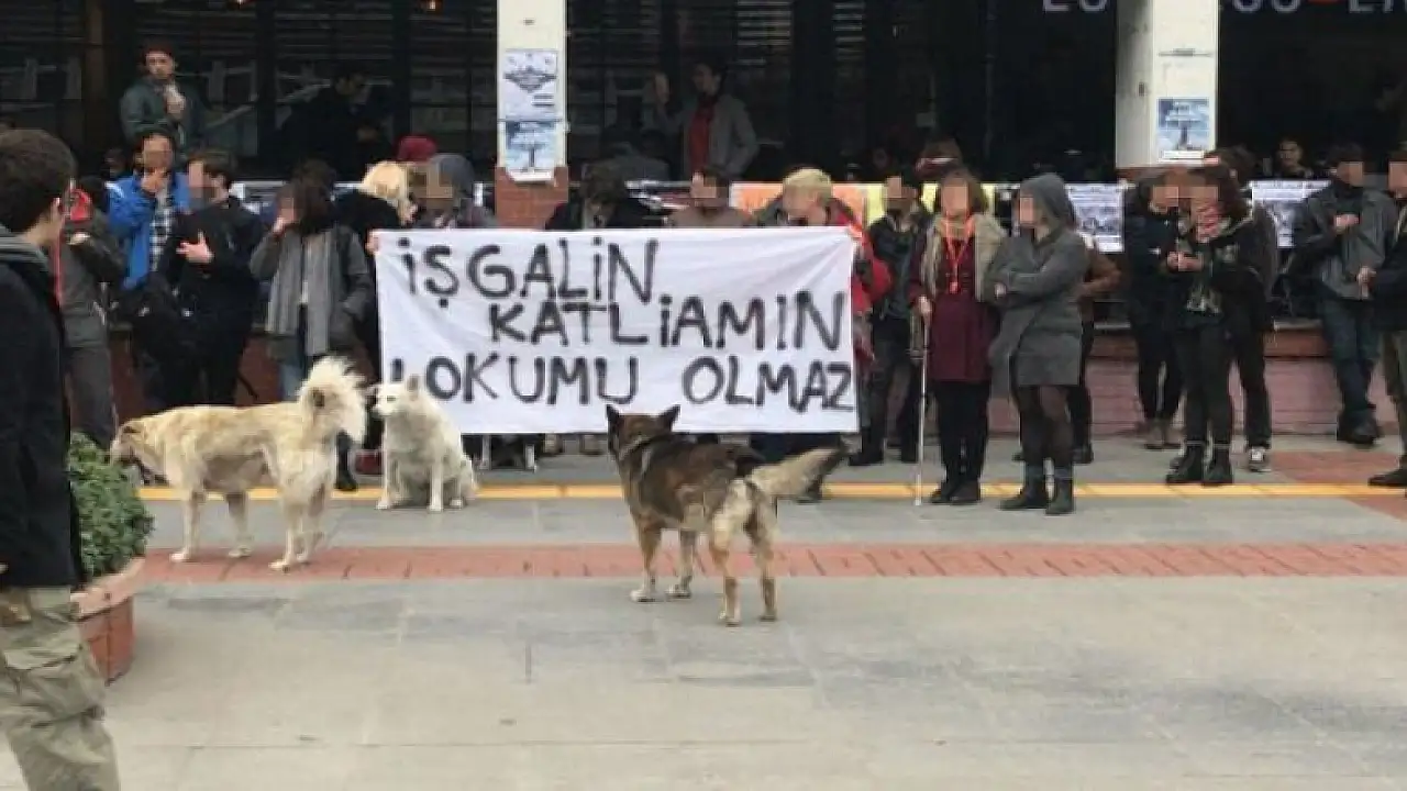 Lokum dağıtmak için stant açan öğrenciler, "İşgalin katliamın lokumu olmaz", "Kürdistan faşizme mezar olacak" ve "Okulumuzda ÖSO'cu istemiyoruz" pankartları açan terör seviciler tarafından engellendi.