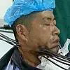 Çin'in Hubei eyaletine bağlı Xiangyang kentinde köprü inşaatında çalışan bir işçi, boğazına altı demir çubuk birden saplandığı halde mucize eseri sağ kalmayı başardı.