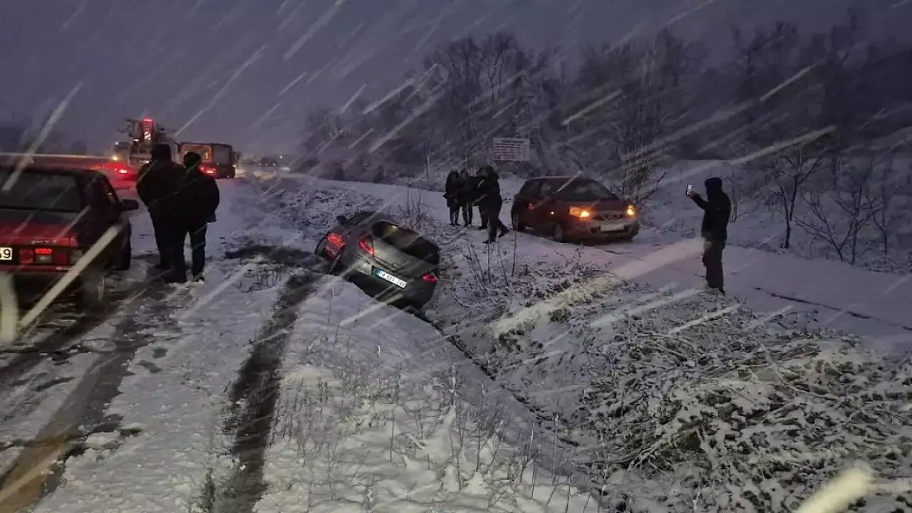 Kar yağışının etkili olduğu otoyolun Bolu Dağı Tüneli kesimi viyadükler mevkiinde tır, hafif ticari araç ve otomobillerden oluşan 10 aracın karıştığı zincirleme kaza meydana geldi.