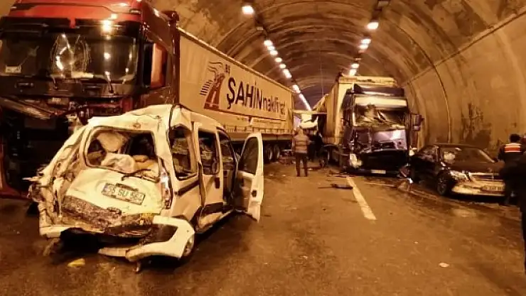 Anadolu Otoyolu'nun İstanbul istikameti Bolu Dağı Tüneli içinde yolcu otobüsleri, tır ve otomobillerin karıştığı zincirleme trafik kazası meydana geldi.