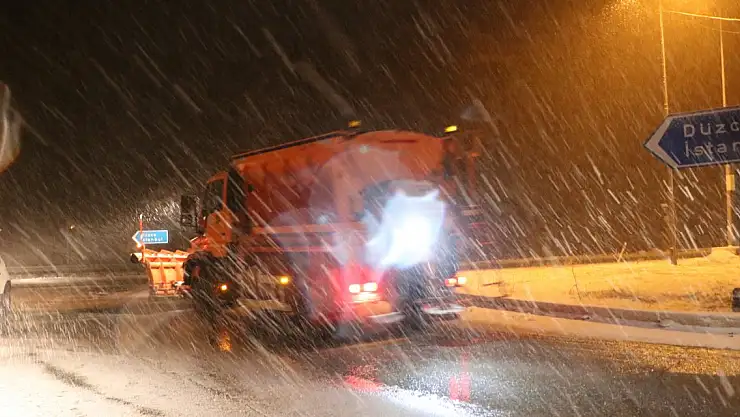 BOLU Dağı'nın D-100 karayolu geçişinde akşam saatlerinde başlayan kar aralıklarla etkili olurken, Karayolları ekipleri yol güzergahları üzerinde kar küreme ve tuzlama çalışması yaptı.
