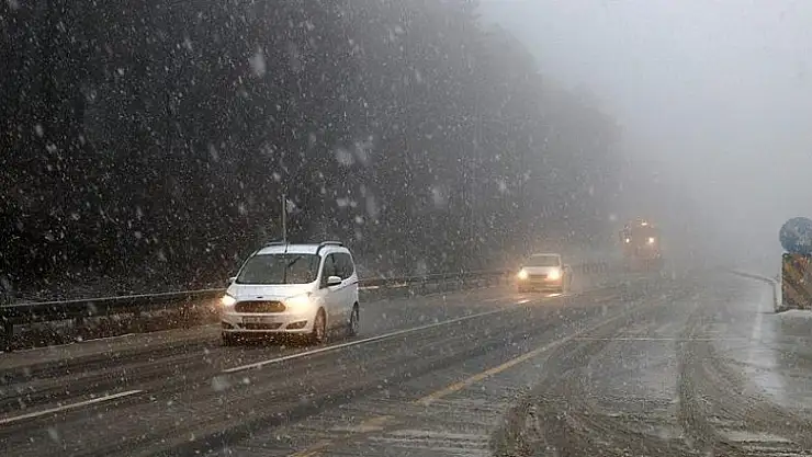 Bolu Dağı'nın D-100 Karayolu ile Anadolu Otoyolu geçişlerinde gece etkili olan sağanak, sabah saatlerinde yerini kar yağışına bıraktı.