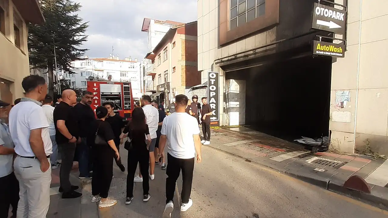 Bolu'da, AVM otoparkının girişindeki yangın söndürüldü