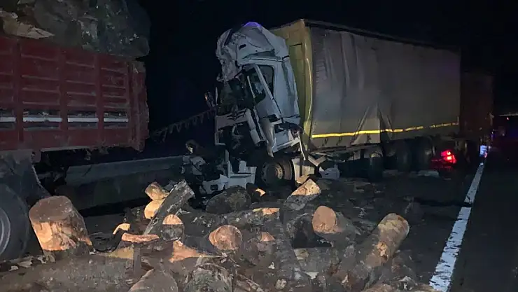 Çarpmanın etkisiyle kamyondaki bazı tomruklar yola düştü.