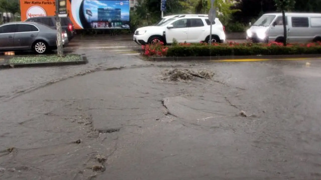 BOLU'da, şiddetli sağanak nedeniyle binaların bodrum katlarını su basarken, yollar suyla kaplandı.