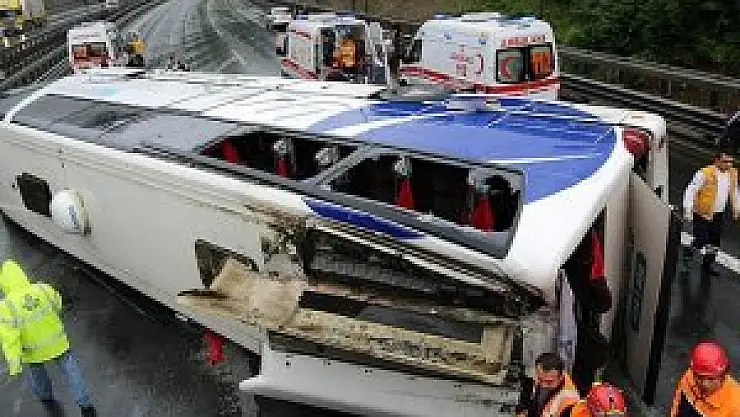 TEM otoyolunda yolcu otobüsünün devrilmesi sonucu meydana gelen kazada ilk belirlemelere göre 1 kişi öldü, 16 kişi yaralandı.