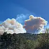 Eskişehir'in Sarıcakaya ilçesinde çekilen fotoğraflarda dumanların gökyüzünü kapladığı görülüyor. Öte yandan yangında görevli hava araçlarının bir kısmının Eskişehir'deki havaalanını kullanacağı öngörülüyor.