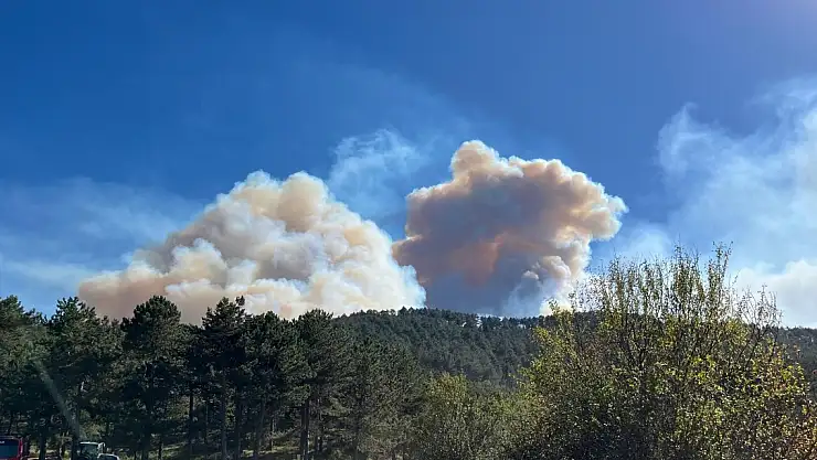 Bolu'da çıkan orman yangını Eskişehir il sınırlarına yaklaşırken, dumanlar gökyüzünü kapladı.