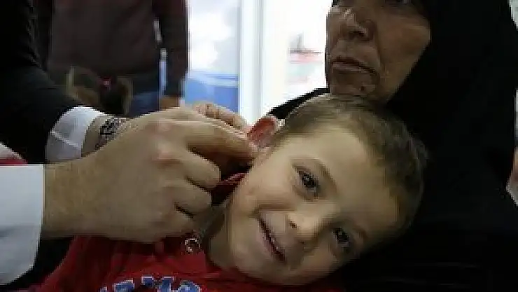 Türk Hava Gönüllülerinin girişimiyle özel bir işitme merkezinde bir hafta önce testleri yapılan Halid ve Meyyade'ye işitme cihazları takıldı.