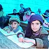 Atme kasabası yakınındaki çadır sınıflarda bombardıman altındaki bölgelerden getirilen sıra ve masaları kullanan kimi ayakkabısız kimi çorapsız birçok çocuk, yokluk nedeniyle defter yerine kendilerine dağıtılan birer sayfa kağıt ve kullandıktan sonra toplanan kalemle eğitimlerini sürdürüyor.
