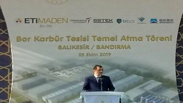 Enerji ve Tabii Kaynaklar Bakanı Fatih Dönmez, "Dünya bor lideri Eti Maden ve yine savunma sanayi alanında faaliyette bulunan özel sektörün katılımıyla TRBOR Bor Teknolojileri A.Ş'yi kurduk. Söz konusu şirkete Eti Maden yüzde 33 pay ile iştirak etti. Tesis ilk etapta yılda bin ton kapasiteyle bor karbür üretimi gerçekleştirecek. Yatırım tutarı 70 milyon dolar olan tesisi 24 ay gibi kısa bir sürede tamamlamayı planlıyoruz. Tesisimizde 250 kişiyi de istihdam edeceğiz" dedi.