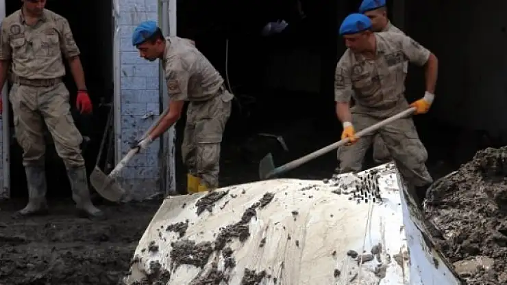 Jandarma personeli, bölgenin bir an önce eski günlerine dönmesi için canla başla mücadele ediyor.