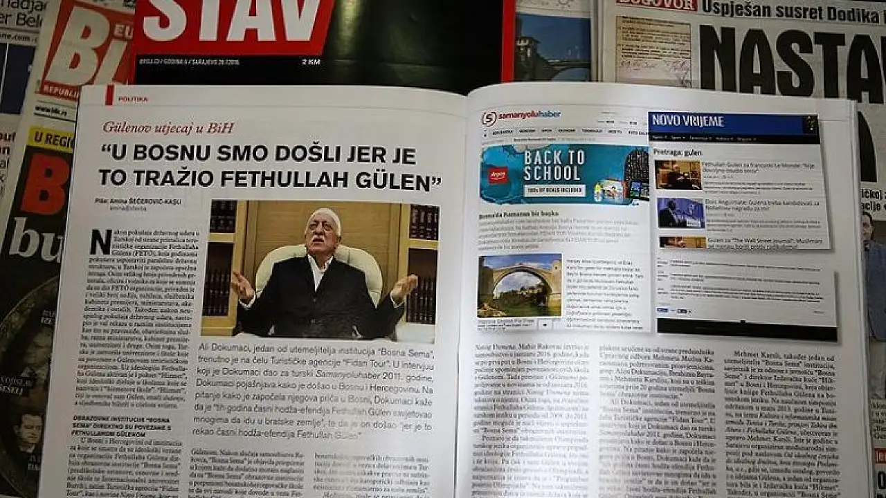Bosna Hersek'te haftalık yayınlanan Stav dergisi, ülkede terör örgütü elebaşı Gülen'e ideolojik yakınlığı bulunan kurumların isimlerini kamuoyuyla paylaştı.
