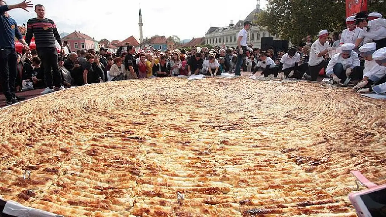 Bosna Hersek'in orta kesimlerindeki Tuzla şehrinde "dünyanın en büyük böreği" unvanını elde etmek için 650 kilogramlık börek pişirildi.
