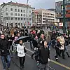 Bosna Hersek'in başkenti Saraybosna'daki Cumhurbaşkanlığı binası önünde toplanan bir grup, binanın önündeki caddeyi araç trafiğine kapattı.
