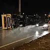 Mersin'in Erdemli ilçesinde sağanak nedeniyle kayganlaşan yolda boya yüklü tır devrildi. Boyalar yola akarken, sürücü kazayı yara almadan atlattı.