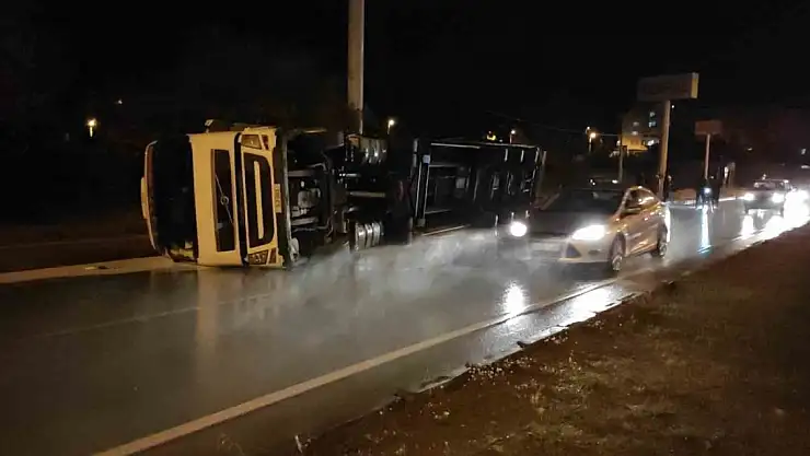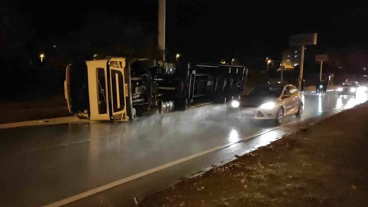 Kaza, Mersin-Antalya D-400 karayolunda Erdemli ilçesine bağlı Limonlu Mahallesi'nde meydana geldi. Alınan bilgiye göre, Serhat K. yönetimindeki Kıbrıs plakalı tır, Antalya istikametinde seyrettiği sırada, yağış nedeniyle kayganlaşan yolda sürücüsünün direksiyon hakimiyetini kaybetmesiyle devrildi. Kazayı yara almadan atlatan sürücü, çevredekilerin yardımıyla araçtan çıkarıldı.