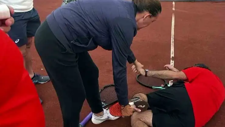 Kocaeli'de yaşayan ve Sakarya'da düzenlenen tenis turnuvasında müsabaka öncesinde çıktığı kortta ısınma hareketleri esnasında sakatlanmış numarası yaparak yere düşen Gökhan Başak, panikle yanına koşan 7 yıllık kız arkadaşına sürpriz...