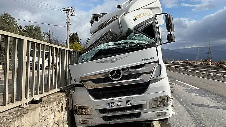 Sakarya'nın Pamukova ilçesi D-650 kara yolunda kamyonun sıkıştırıp yoldan çıkarttığı tır beton bariyerlere çarptı.