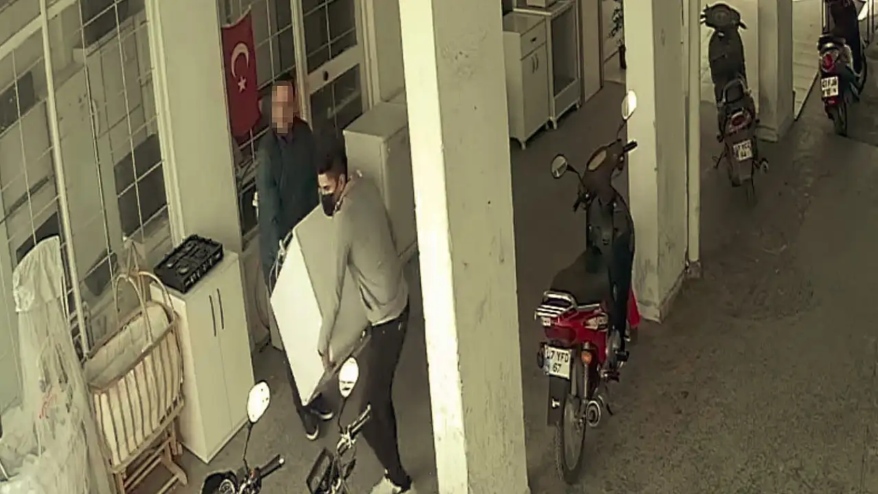 Antalya'nın Serik ilçesinde hırsız, beyaz eşyaları çalmak için nakliye kamyonu kiralayıp geldiği iş yerinde eşyaları kamyonete yüklemek için esnaftan yardım istedi. Esnaf ise dükkanın elemanı zannederek hırsızla birlikte beyaz eşyaları kamyonete yükledi. O anlar güvenlik kameraları tarafından anbean kaydedildi.