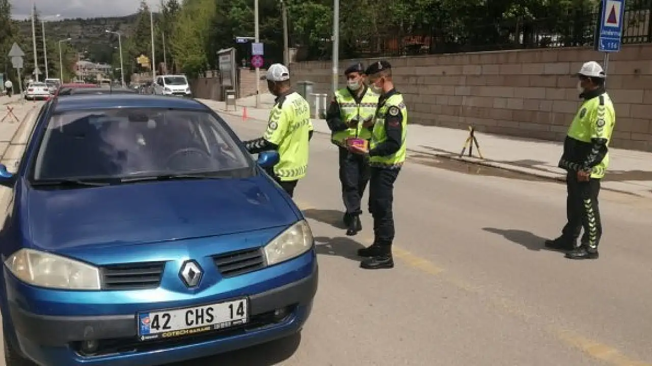 Bozkır İlçe merkezinde 3 noktada gerçekleştirilen etkinlikte seyir halindeki araçlar durdurularak trafik güvenliğine katkı sağlayacak hususlarda bilgilendirmelerde bulunularak yaklaşan Ramazan Bayramı dolayısıyla çikolata ikramında bulunuldu.