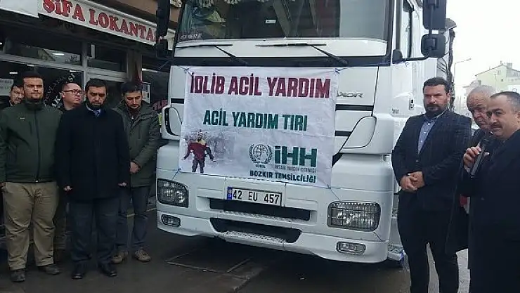 Konya'nın Bozkır ilçesinden İdlib'e gönderilmek üzere toplanan bir tır yardım dualar eşliğinde gönderildi.