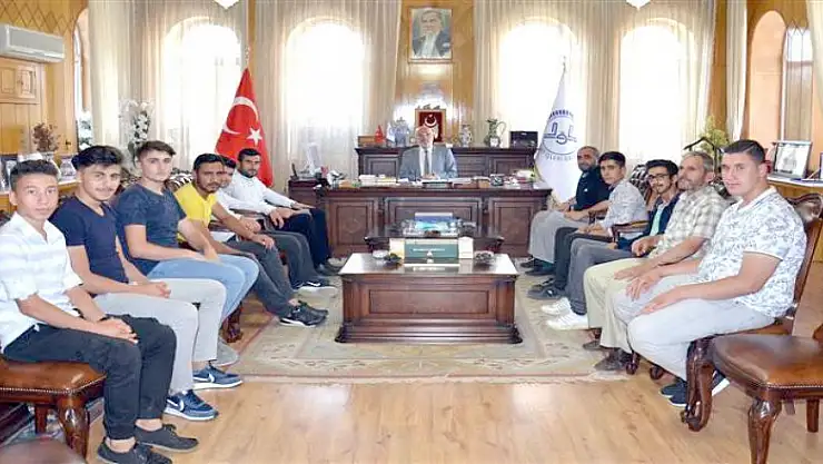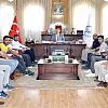 Bozkır İlçe Müftüsü Seyit Böğet, Kurs Yöneticisi Hüseyin Çetin ve beraberinde hafızlığını tamamlayan öğrenciler İl Müftüsü Ahmet Poçanoğlu'nu makamında ziyaret etti.