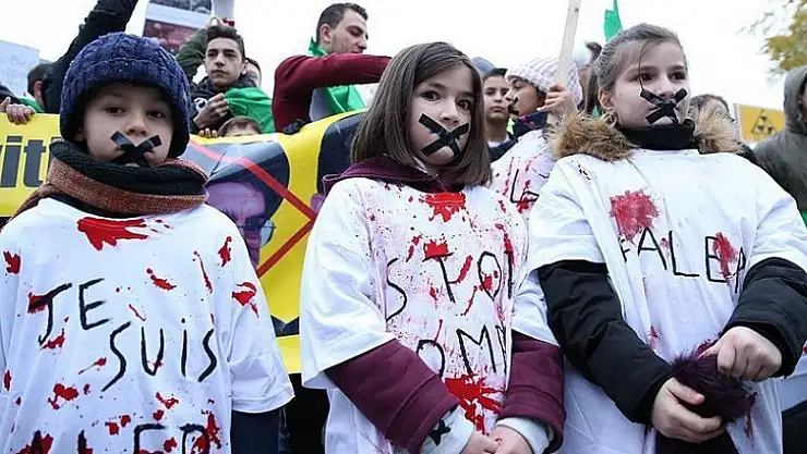 Bazı sivil toplum örgütlerinin girişimiyle Avrupa Birliği binalarının önündeki Schuman Meydanı'nda düzenlenen gösteriye yüzlerce kişi katıldı. Göstericiler, ''Halep'i kurtarın", "Ailelerimiz Halep'te", "Halep yanıyor", "Halep'te katliam var'' yazılı dövizler ve Türk bayrakları taşıdı.