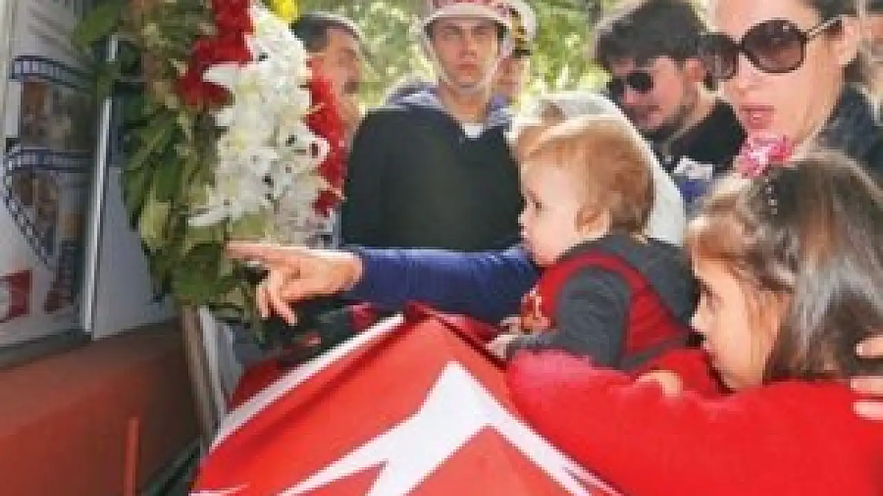 Pilot Binbaşı Deniz Akdeniz'in çocukları 1 yaşındaki Doruk ile 6 yaşındaki kızı Sude Akdeniz, cenaze töreni boyunca babalarının Türk bayrağına sarılı tabutunun başından ayrılmadı.