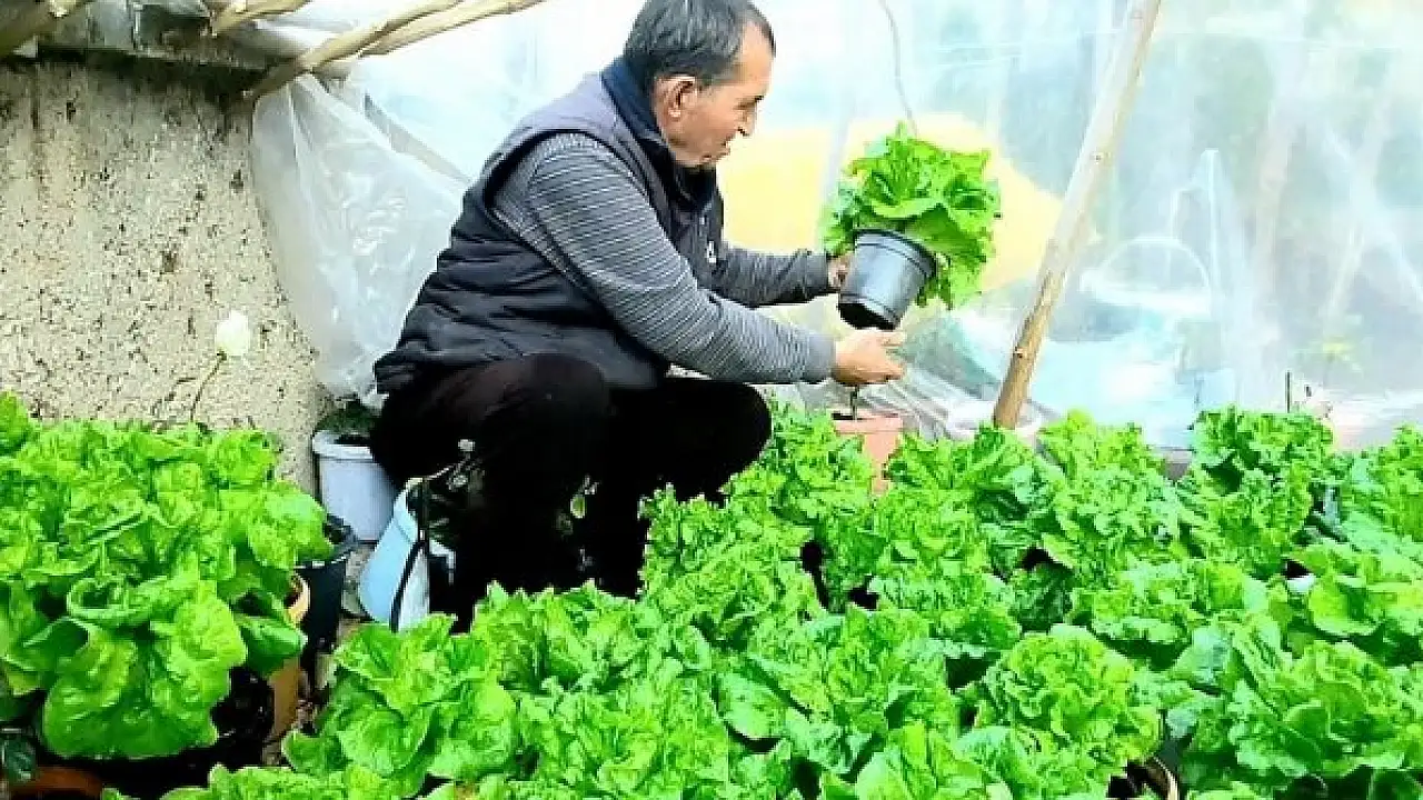 Afyonkarahisar'ın Dinar ilçesinde yaşayan Kemalettin Ersoy, müzik öğretmenliğinden emekli olduktan sonra saksıda mineral değeri yüksek marul yetiştirmeye başladı. Marulları saksı ile birlikte satın alanlar, ihtiyaçları kadar yaprak koparıp kullanıyor, bitki büyümeye devam ediyor