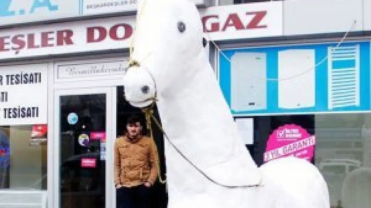 Kocaeli'nin Körfez ilçesinde yaşayan vatandaş kardan adam yerine kardan at yapınca sosyal medyada ilgi odağı oldu.