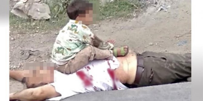 Keşmir'de güvenlik güçleri ile militanlar arasındaki çatışmada ölen büyükbabasının üzerine oturmuş ağlayan bu 3 yaşındaki çocuğun fotoğrafı dünya çapında infiale yol açtı.
