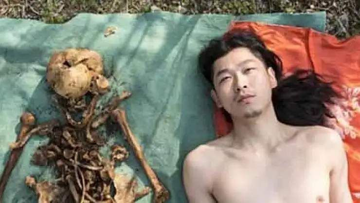 33 yaşındaki sanat tutkunu Çinli adam, fotoğraf çekilmek için babasının mezarını kazıp, kalıntılarıyla çıplak pozlar verdi.