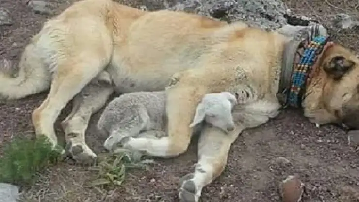 Konya'nın Ereğli ilçesinde kangal köpeğinin yeni doğan bir kuzuyu sarıp uyuduğu fotoğraf, hayvanların merhametini ortaya koydu.