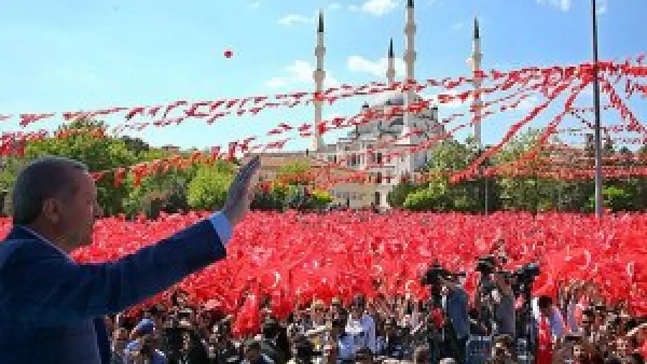 "Benim Türkiye'yi karış karış dolaşmamdan, her fırsatta vatandaşlarımızla bir araya gelmemden rahatsız oluyorlar. Cumhurla başkanın buluşmasından, kucaklaşmasından niye rahatsız oluyorsunuz? Bunlar cumhurbaşkanlığı makamını hala milletin değil, vesayetin temsilcisi olarak görüyorlar. Yüksek Seçim Kuruluna durmadan gidiyorlar. Ne diyorlar biliyor musunuz? 'Bu cumhurbaşkanını meydana çıkarmayın'. Yüksek Seçim Kurulu tabi reddediyor. CHP'si gidiyor, MHP'si gidiyor. Bunun yanında HDP'si gidiyor. durmadan gidiyorlar. Nereye giderseniz gidin, bu meydanlardan beni alamazsınız, susturamazsınız. Anayasa cumhurbaşkanının çalışmasını belirlemiş. Ve bu konuda halkıyla beraber olmak onun en önemli görevidir. Hiç endişeniz olması, biz dik duracağız, dikleşmeyeceğiz. Ama eğilmek, asla. Biz sadece Allah'ın huzurunda eğiliriz. 10 Ağustos 2014 tarihinde cumhurbaşkanı doğrudan milletin oylarıyla seçildiği gün vesayet bitti."