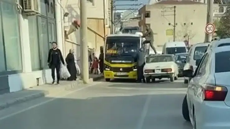 Edinilen bilgiye göre, minibüs şoförü ve otomobil sürücüsünün yol verme tartışması kavgaya dönüştü. Öfkeli sürücüsü, otomobilinin tavanına çıkarak minibüs sürücüsüne tekme ve tokat vurdu. Çevredeki vatandaşların araya girmesiyle sürücü otomobilin üstünden indirildi. Bu anlar cep telefon kamerasına saniye saniye yansıdı.