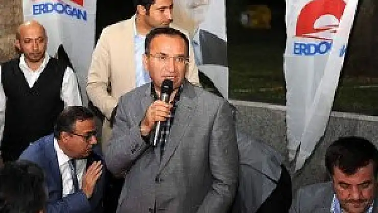 Belli güçlerin Başbakan Recep Tayyip Erdoğan'ın önünü kesmek için çaba gösterdiğini vurgulayan Bozdağ, "Erdoğan millet adamıdır, halk için çalışır, halkın yanındadır. Durum böyle olunca tahmin edilebilen o malum güçler bu halk adamının önünü kesmek istemektedir. Bir Allah'ın bir de bu aziz milletin önünde saygıyla eğilen bir liderdir. Bu millet o liderin boynunu kimseye eğdirtmez" diye konuştu.