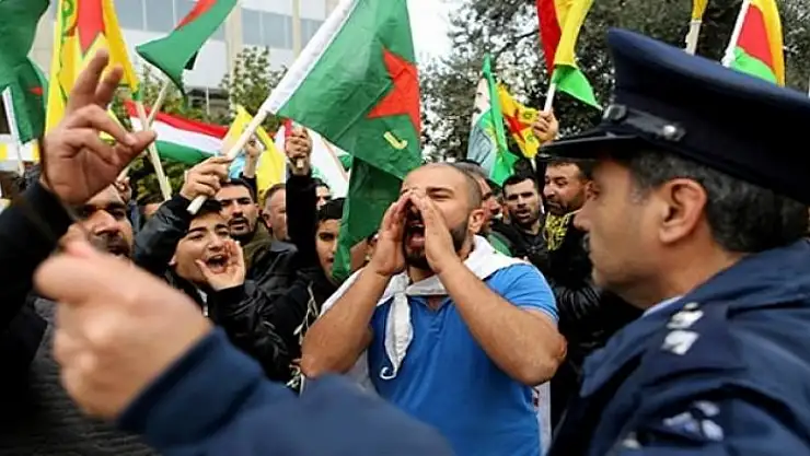 Avrupa'nın farklı ülkelerinde terör estiren YPG destekçileri, bugün de Güney Kıbrıs'ta ABD ve Rus diplomatik temsilcilikleri önünde gösteri yaptı.