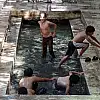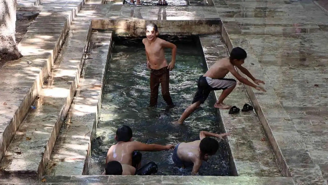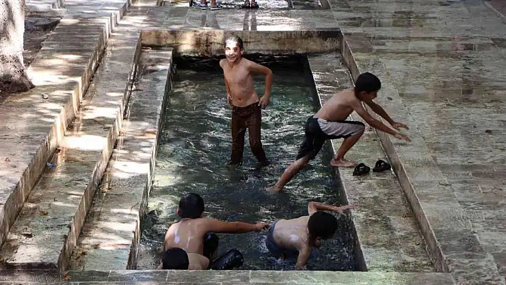 Türkiye'nin en sıcak kentlerinin başında gelen Şanlıurfa'da sıcak hava, hayatı olumsuz etkiliyor. 40 derecenin üzerinde seyreden hava sıcaklığından bunalan çocuklar cami avlusundan geçen Balıklıgöl suyunda serinledi.