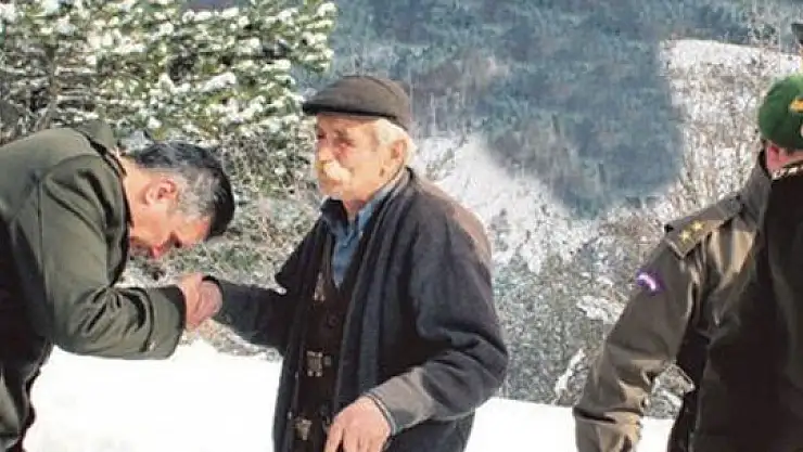 Şehit oğlunun mezarını bırakmamak için köyünü terk etmeyen 80 yaşındaki babaya Genelkurmay Başkanı Özel plaket gönderdi. Plaketi getiren tuğgeneral fedakâr babanın elini öptü.