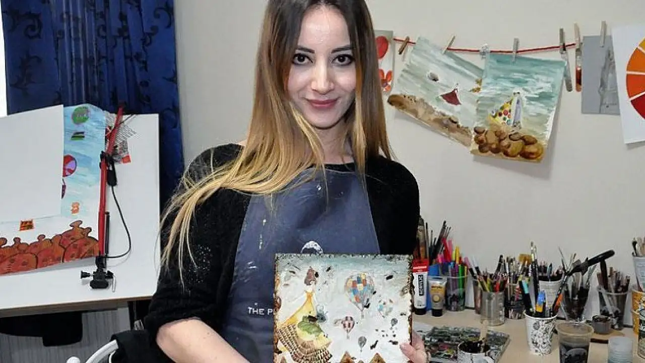 Nevşehir'in el sanatlarıyla ünlü Avanos ilçesinde yaşayan ressam Hatice Abalı, tuvale ve oniks taşı üzerine yaptığı çizimleri kahve telvesi de kullanarak renklendiriyor.