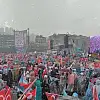 Yoğun yağmur altında Erdoğan'ı dinlemeye gelen halk, alanı hıncahınç doldurdu.