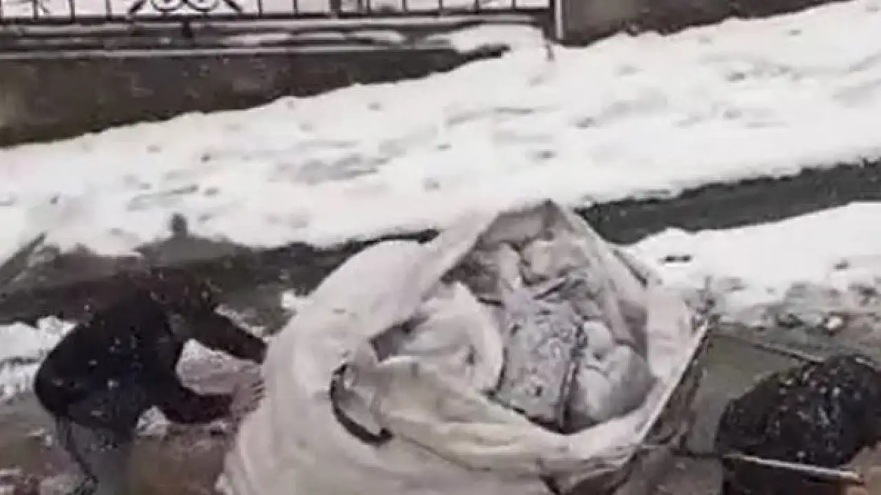 Kocaeli'nin Derince ilçesinde, geri dönüşüm atığı toplayan bir kişi, yoğun kar yağışı altında sokaktaki yokuşu çıkmakta zorluk yaşadı. Durumu gören bir vatandaş ise, zor durumda kalan atık toplayıcısına arkadan iterek destek oldu.