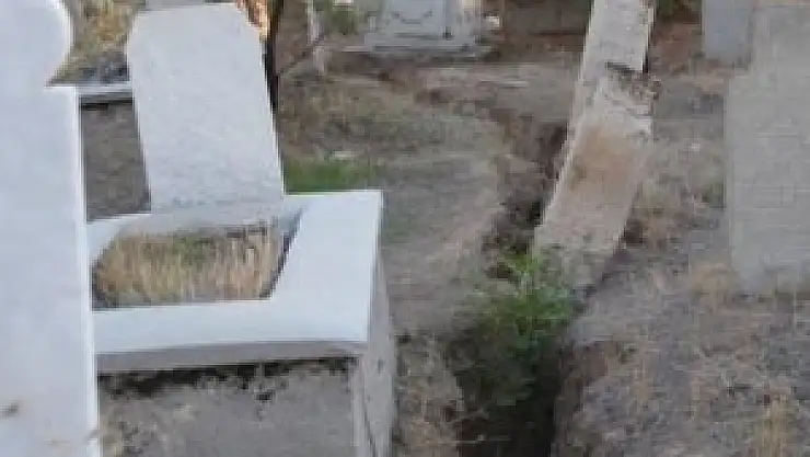 Mezarlıkta oluşan yarıkların çok büyük olduğunu aktaran Aydın, her geçen gün yarık ve çatlakların rüzgarla kapandığını kaydetti.