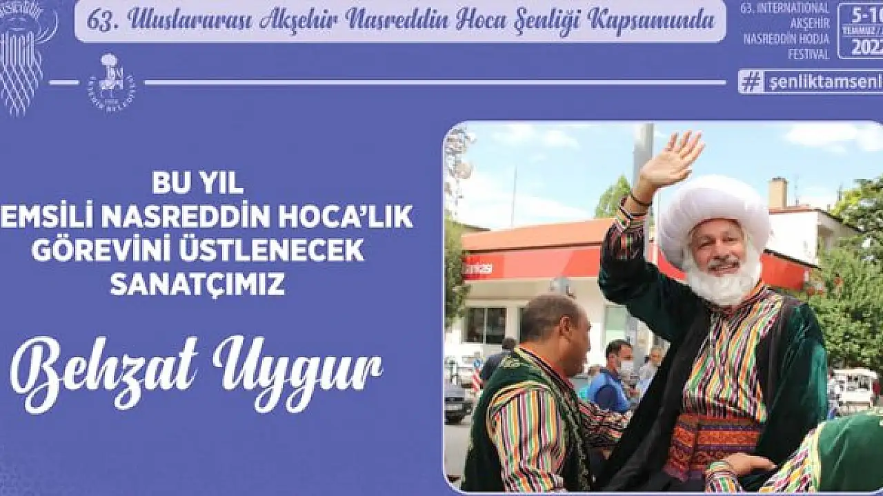 Bu yıl 63'üncüsü düzenlenecek 'Uluslararası Akşehir Nasreddin Hoca Şenliği'nde, temsili Nasreddin Hoca'yı tiyatro sanatçısı Behzat Uygur canlandıracak.