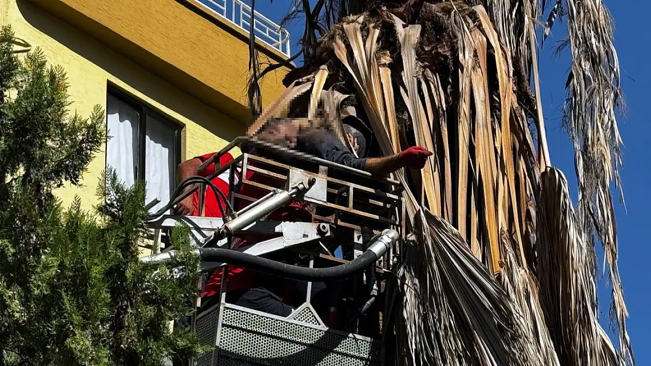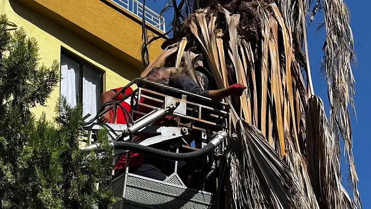 Olay, merkez Mezitli ilçesi Akdeniz Mahallesi'nde meydana geldi. Budama yapmak için sitenin bahçesindeki ağaca çıkan Ramazan Özaydın, ayağı kayınca bulunduğu yerden düştü. Dallara asılı kalan Özaydın'ı fark eden çevredekiler, 112 Acil Çağrı Merkezi'ne bildirdi. İhbar üzerine bölgeye sağlık ve itfaiye ekipleri sevk edildi.