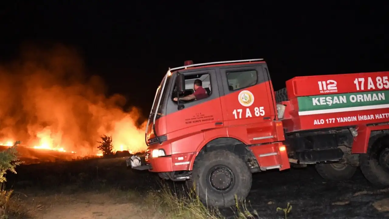 Yeni Mahalle'de buğday ekili arazide, akşam saatlerinde henüz bilinmeyen bir nedenle yangın çıktı. Alevler, kısa sürede büyüdü. İhbar üzerine olay yerine Keşan Belediyesi, Keşan Orman İşletme Müdürlüğü, Beyendik Belediyesi ve Yenimuhacir Belediyesi'ne ait itfaiye ekipleri sevk edildi. Polis çevrede güvenlik önlemi alırken, sağlık ekipleri de olay yerinde hazır bekletildi. Ekipler, 2 saatlik çalışma ile alevleri kontrol altına alarak, söndürdü. Yaklaşık 100 dönüm buğday ekili alan zarar görürken, polis ve itfaiye ekipleri yangının çıkış nedeninin belirlenmesi için çalışma başlattı.