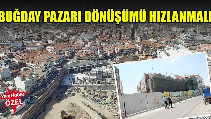 Konya'nın tarihi buğday pazarında uzun süredir tamamlanamayan dönüşüm çalışmalarında henüz sona gelinemedi. Bölge esnafı, dönüşüm çalışmalarının yavaş ilerlemesinden yakınarak, çalışmaların bir an önce bitirilmesini istiyor.